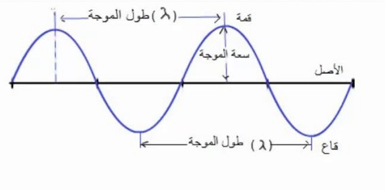 سعة الموجة : مقدار ارتفاع القمة او انخفاض القاع عن مستوى خط الاصل –