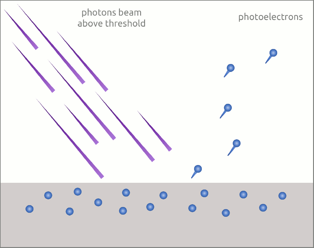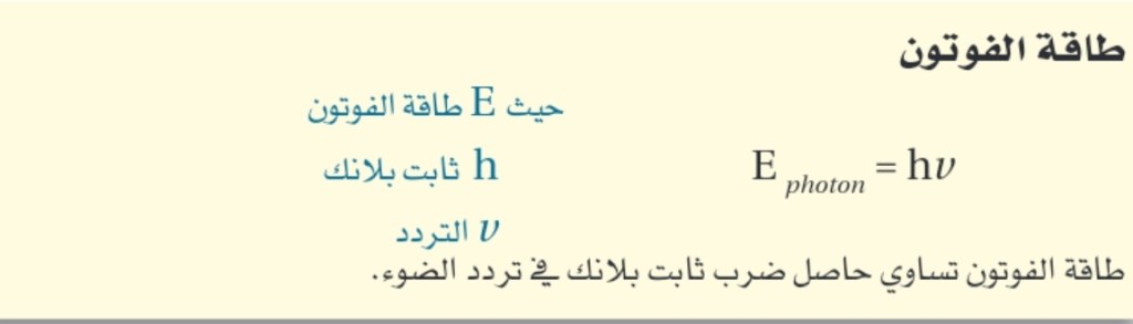 التأثير الكهروضوئي : انبعاث الفوتونات من سطح الفلز عندما يسقط عليه ضوء بتردد مساو لتردد الفوتون