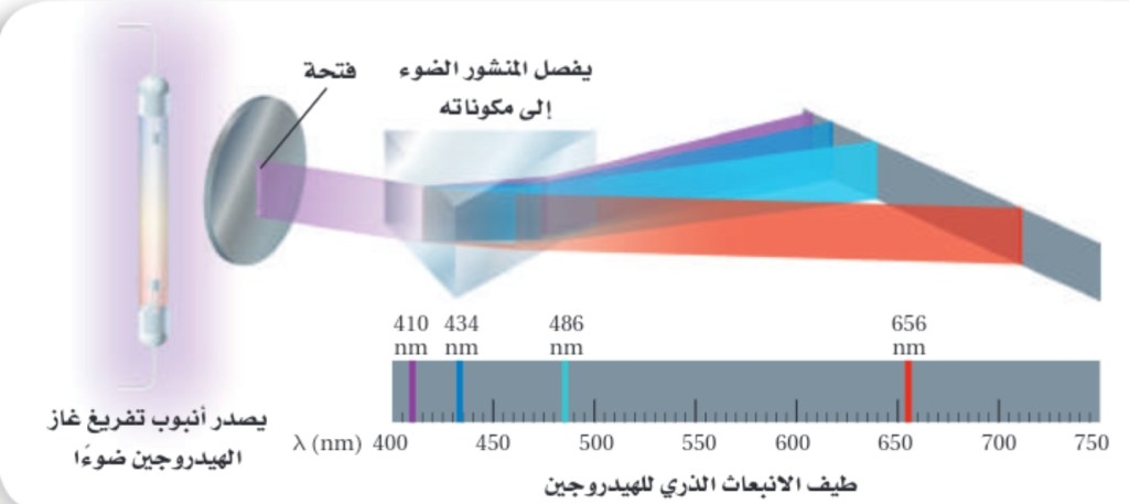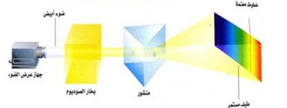 الطيف المستمر :الوان متراصة مرئية لا يوجد فيها فواصل تنتج عن تحليل الضوء الابيض بواسطة منشور زجاجي